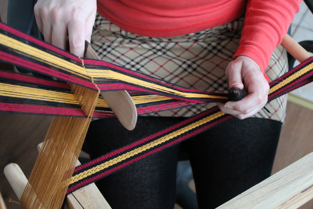 The initial exercises were slow – about 0.5 meters per hour. It came out crooked and the shuttle fell out of my hand. Later I managed to speed up and the speed record is about 2.2 meters per hour. Ultimately, the weaving speed is lower because I prefer to tighten the weave very tightly, and not just hmm… decently.