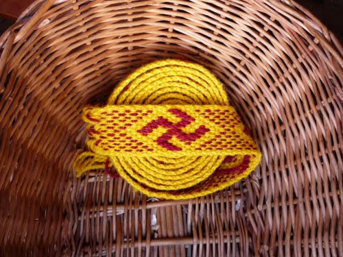 Wykończyłam zieloną włóczkę, a włóczka mnie. Tym razem nie poprawiałam kolorów, żeby można było porównać jak te krajki widzę ja, a jak aparat 😉 Osnowa analogicznie taka sama jak w przypadku krajek brązowych. Tak więc ta seria, to pasy trochę szersze niż poprzednie zielone. Swastyki zmieściły się elegancko. Poszłam też o krok dalej w wariacjach…