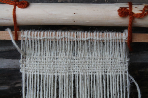 Dzisiaj podczas Festiwalu w Biskupinie ukończyłam od dawna wiszącą tkaninę i moje krosna pionowe wreszcie są wolne. Przyszedł mi też do głowy pomysł jak uprościć tworzenie osnowy. Krajka brzegowa sprawdziła się dobrze w przypadku zapaski, jednak nie we wszystkich przypadkach będzie potrzebna. Ponadto osnuwanie i tkanie krajki brzegowej z dokładaniem do wątku osnowy tkaniny właściwiej jest dosyć czasochłonne. Na pewno w porównaniu do tego, co dzisiaj zrobiłam.